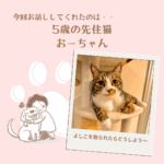 今回の練習会では、保護猫のチョロ松くんと先住猫のおーちゃん、双方にお話をしました。