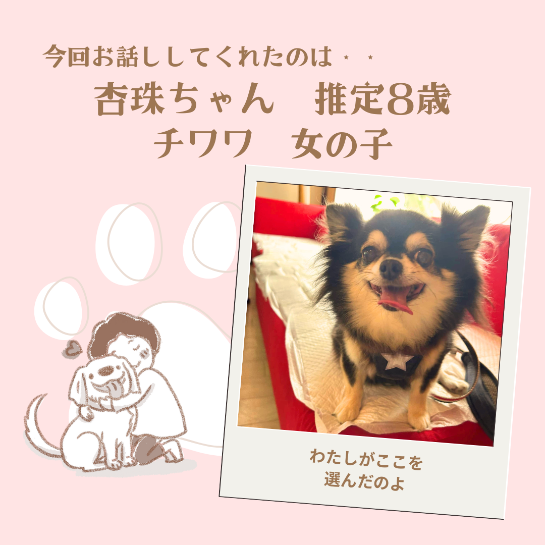 杏珠ちゃんは3年前に保護され、今の飼い主さんの家族になりました。