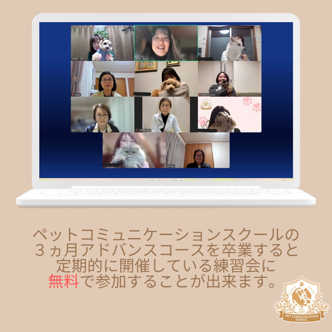 ペットコミュニケーションスクール®︎3ヵ月アドバンスコースを卒業すると毎週開催している練習会に無料で参加できます!